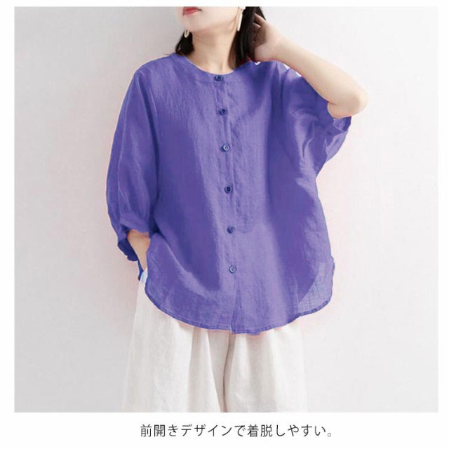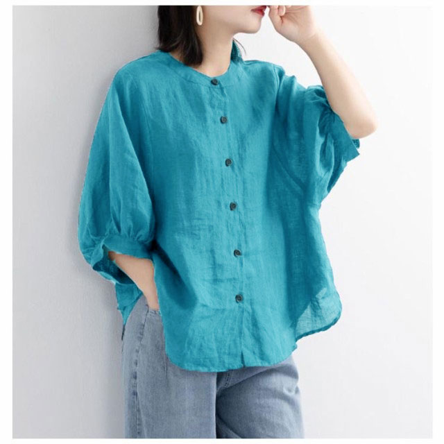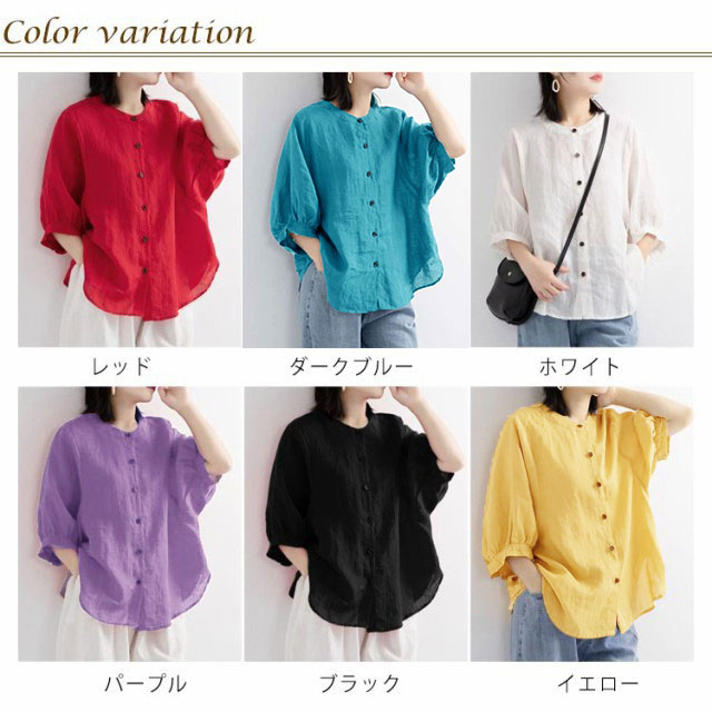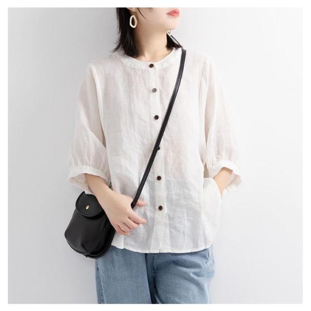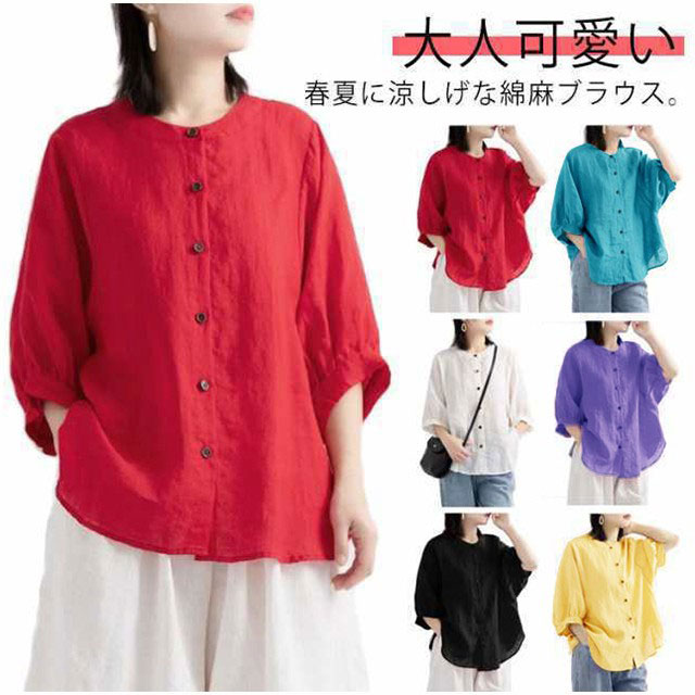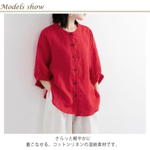綿麻 夏 レディース 薄手 丸襟 半袖 シャツブラウス 春 大きいサイズ コットンリネン 無地 コットンリネン ブラウス ゆったり 涼しい ナチュラル ショート カジュアル シャツ Tシャツ パフスリーブ トップス 可愛い おしゃれ きれいめ 着?せ 通勤 大人可愛い