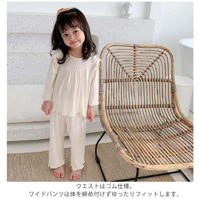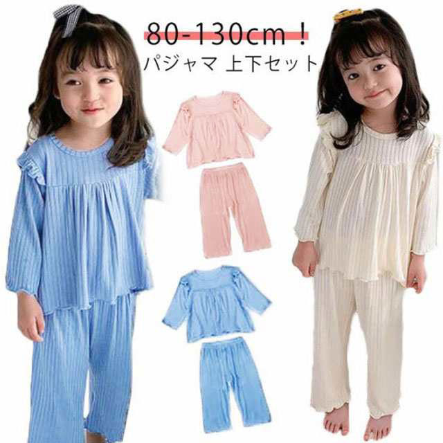 | 80-130cm!フリル仕立てで女の子らしさあふれるデザインです。 生地はやわらかくストレッチが効いていてとてもよく伸びるので着せやすいです。 ウエストはゴム仕様、ワイドパンツは体を締め付けずゆったりフィットします。 薄手の長袖なので、春・秋はもちろん、夏のエアコンが効いた部屋でも活躍します。 お泊り保育やお友達とのお泊り会に、プレゼントやギフトなどにもお勧めです。 | |
