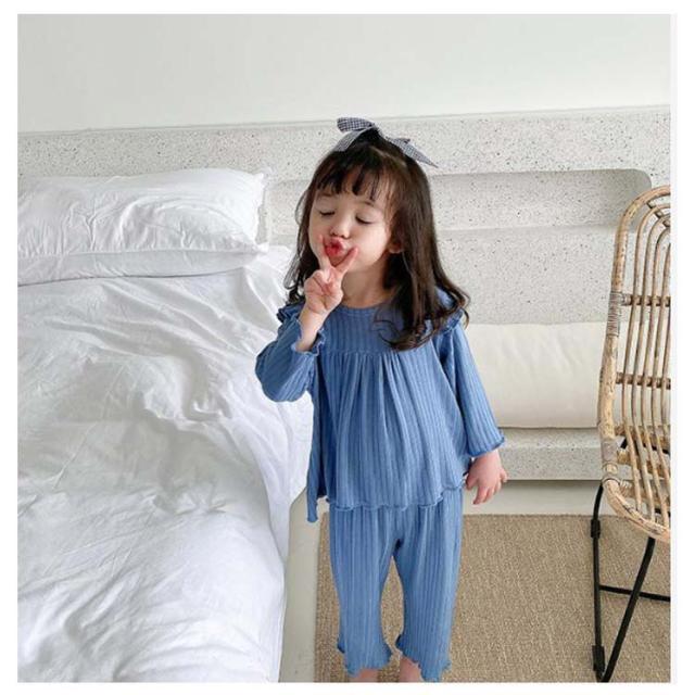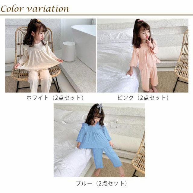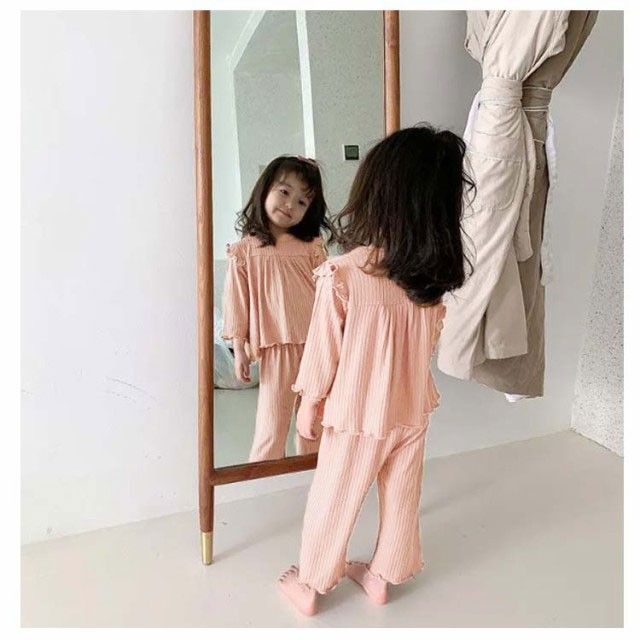 2点セット 涼しい ジュニア 子供服 長袖Tシャツ セットアップ 女の子 上下セット 部屋着 キッズ パジャマ 長ズボン 子供 子ども ルームウェア 冷感 薄手 こども 綿 ベビー ナイトウェア コットン 女の子 女児 冷房対策 可愛い シンプル かわいい 80 90 100 110 120