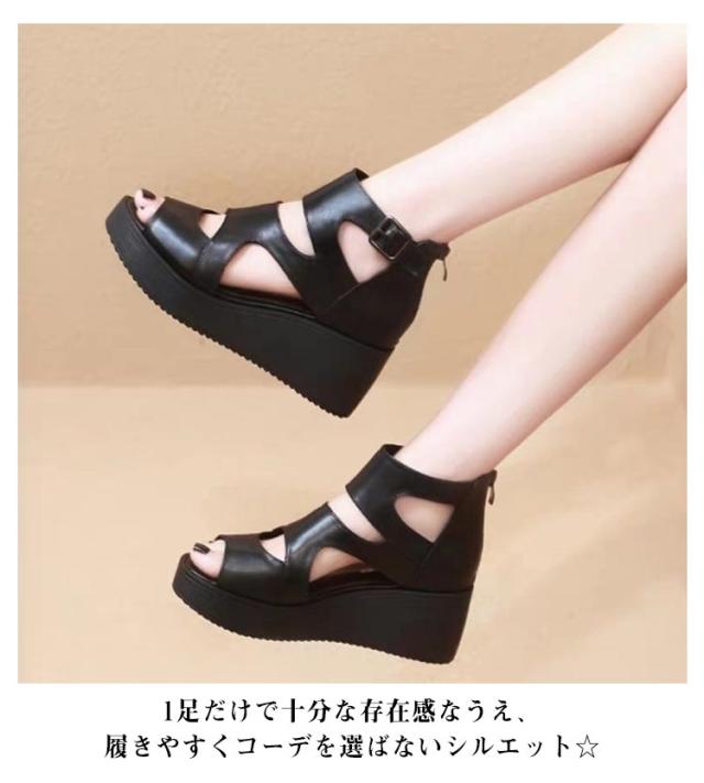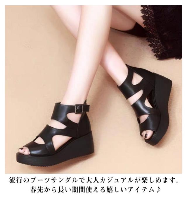 インヒール厚底 レザー ショートブーツ ハイヒール 厚底サンダル 太ヒール サマーブーツ 夏 厚底 レディース靴 オープントゥ シューズ サマーブーツ サマーブーツ ブーツサンダル 疲れにくい 痛くない 歩きやすい 通気性 透け感 カジュアル 美脚 靴