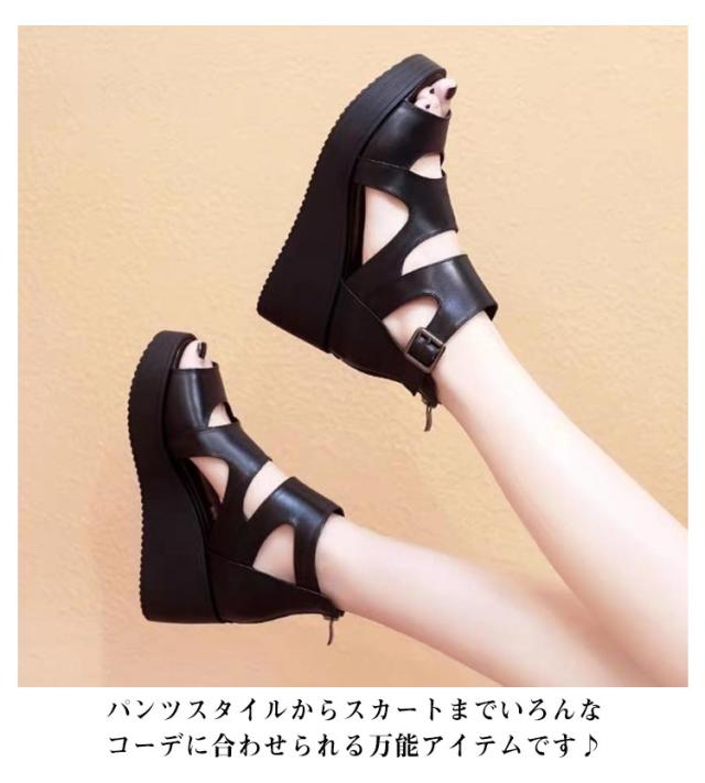 | 女性らしい印象が高まり、様々なアイテムと合わせやすいのも嬉しいポイントです。 履くだけで足長+綺麗に見える厚底ウェッジサンダル♪ 流行のブーツサンダルで大人カジュアルが楽しめます。春先から長い期間使える嬉しいアイテム♪ 1足だけで十分な存在感なうえ、履きやすくコーデを選ばないシルエット☆パンツスタイルからスカートまでいろんなコーデに合わせられる万能アイテムです♪ 軽量で裏底には滑り止め加工を施しております、ソールは耐久性があります。 夏の季節はオープントゥ デザインでネイルも楽しんで頂けます。 | |