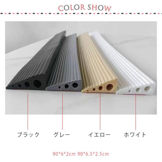 | 段差解消スロープは置くだけなので簡単です。 スロープの表面に溝状の設計があり、滑り止め効果が良いです。 取り付けは添付の両面テープで貼り付けるだけでOKです 車椅子・ベビーカーもスムーズに進めます!お掃除ロボットもスイスイ♪ ゴムの材質は耐摩耗性に優れて、擦り傷を防ぎ、すごく耐用です。 ご希望の幅に合わせて自由にカットすることができます。 | |