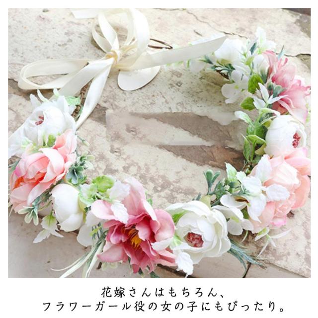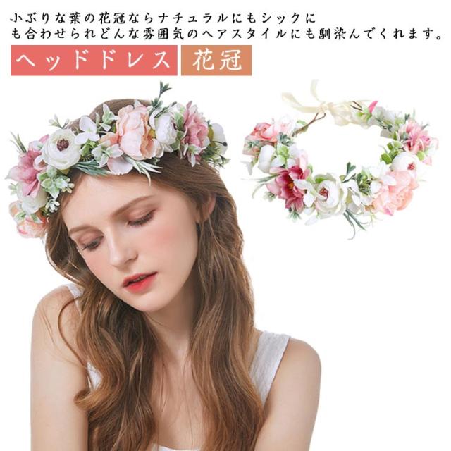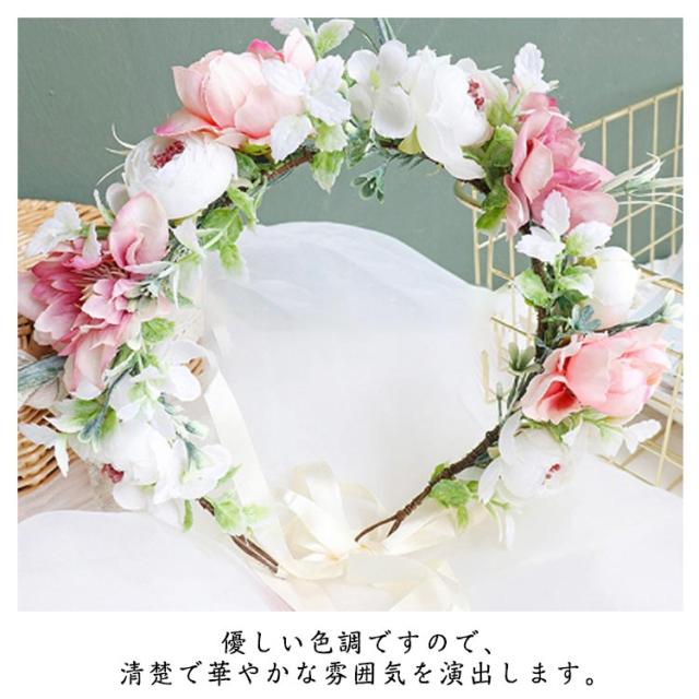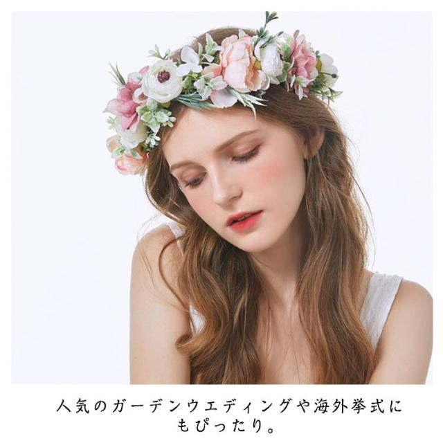 花冠 結婚式 ヘッドドレス ウェディング ブライダル ガーデンウエディング フォトウエディング 撮影小道具 お色直し 海外挙式 披露宴 2次会 パーティ ピーチ 森ガール 送料無料