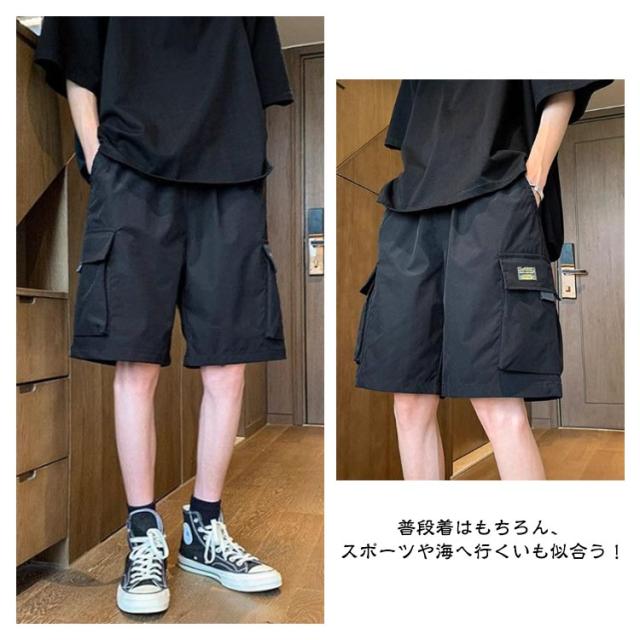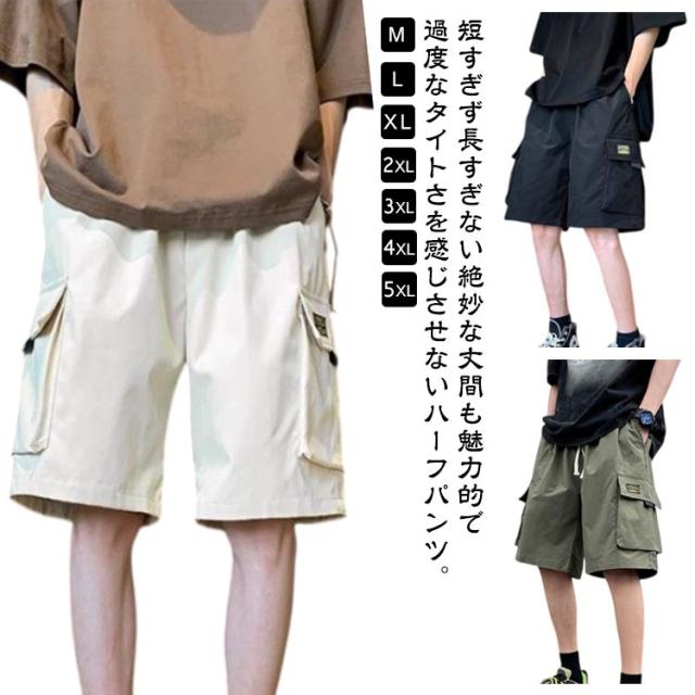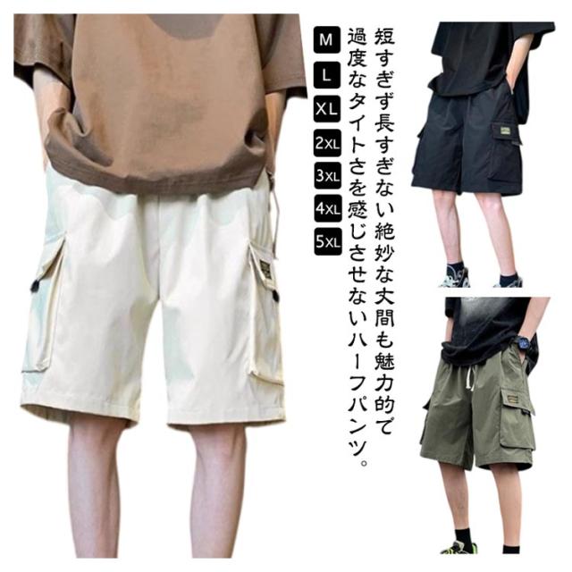 メンズ ワイドパンツ ショートパンツ 夏 短パン 五分丈 ズボン ハーフパンツ 大きいサイズ カーゴパンツ ゆったり 半ズボン ハーフパンツ 作業着 ボトムス ワークパンツ ウエストゴム
