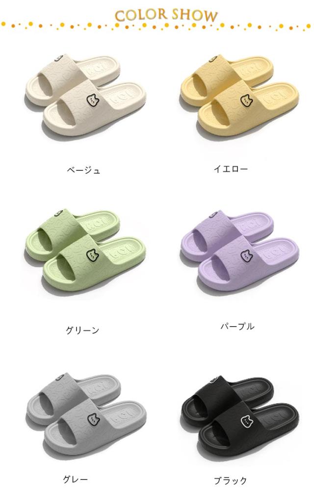 | ルームシューズ 23-27.5cm 適度に柔らかいEVA素材。耐水性、耐久性に優れているので長く使える 滑り止め付き、濡れた床でも安心♪ 厚底ソールで安定感抜群 | |