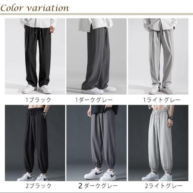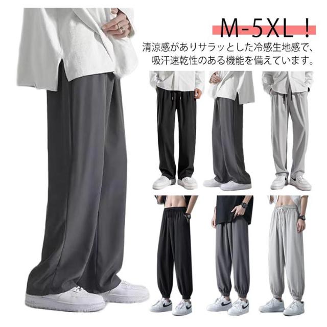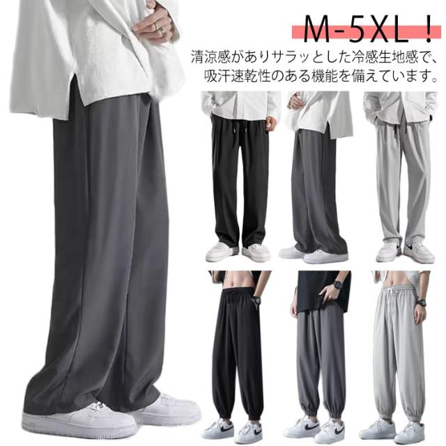 2タイプ!ワイドパンツ メンズ 接触冷感 パンツ 夏 涼しい 吸水速乾 チノパン 清涼 涼感 ズボン ゴルフウェア アイスシルクパンツ テーパード ジョガーパンツ ロングパンツ スポーツパンツ ゆったり 大きいサイズ 無地 軽量 薄手 通気 送料無料