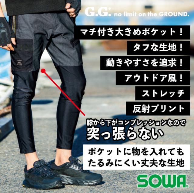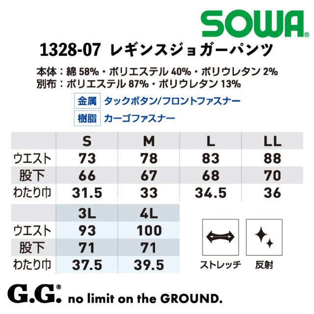1328-07 SOWA レギンスジョガーパンツ 春夏 秋冬 おすすめ 工事現場 建設業 農作業 釣り アウトドア 自転車 バイク ブラック ダークグレー S M L LL