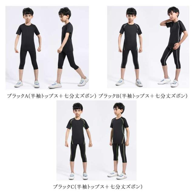 キッズ コンプレッションウェア 上下セット ジュニア 子供用 半袖 長袖 インナーシャツ スパッツ 男の子 女の子 スポーツインナー アンダーシャツ タイツ ロング丈 七分丈 レギンス 通気 吸汗 速乾 スポーツウェア トレーニングウェア 運動 部活 サッカー ランニング