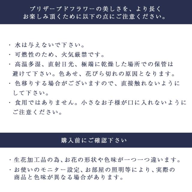 プリザーブドフラワーやソープフラワーの美しさを、より長くお楽しみ頂くために以下の点にご注意ください。