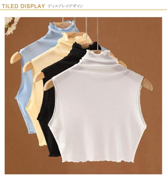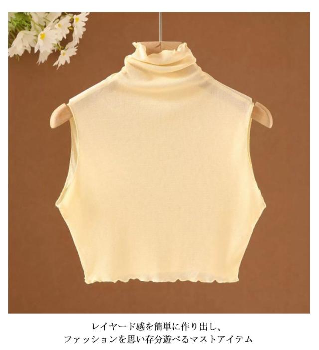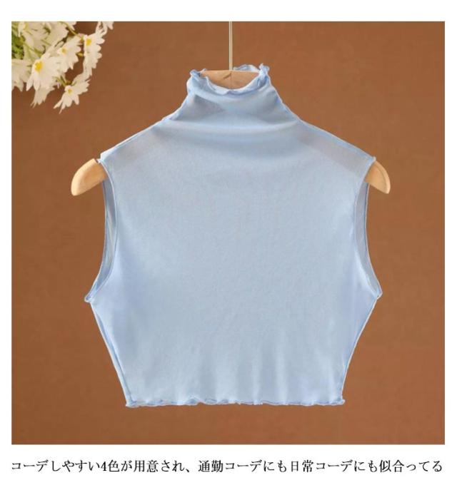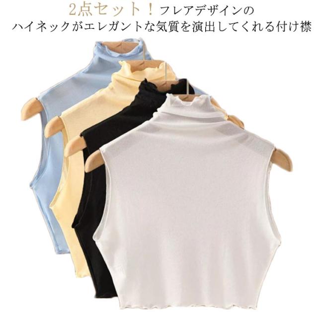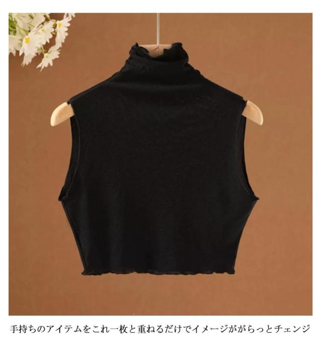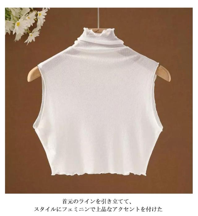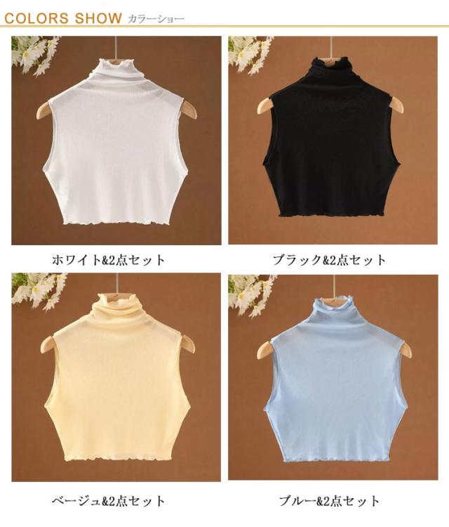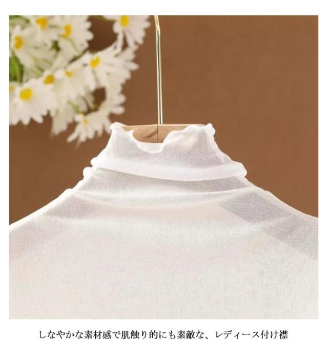 2点セット シースルー カットソー レース ハイネック 付け襟 タートルネック フリルネック レイヤード風 重ね着 インナー レディース ブラウス襟 つけえり 立ち襟 春秋 通勤 ノースリーブカットソー つけ襟 つけえり 女性 薄手 ホワイト ブラック 送料無料