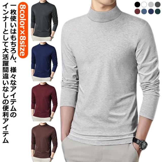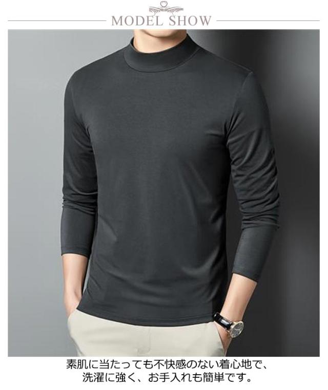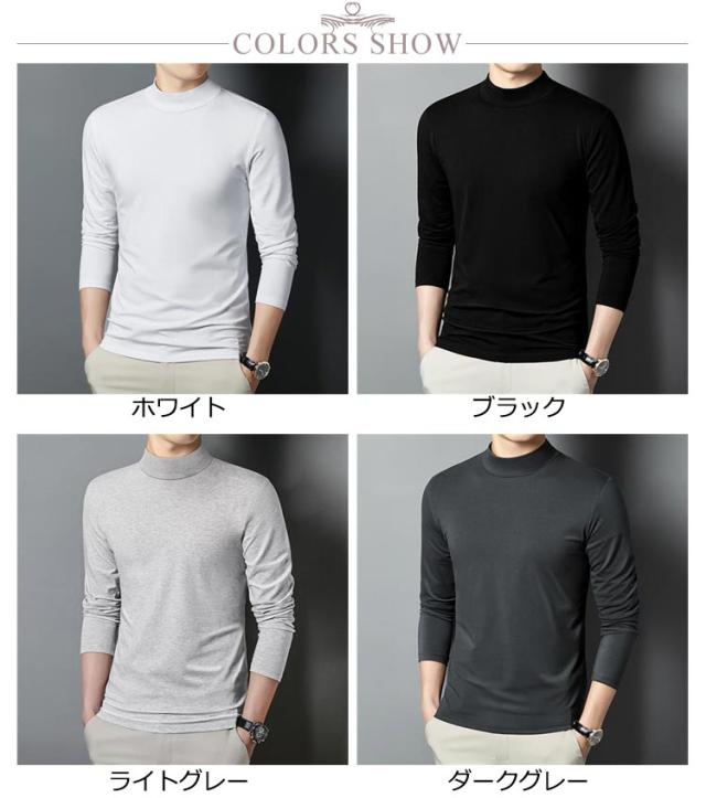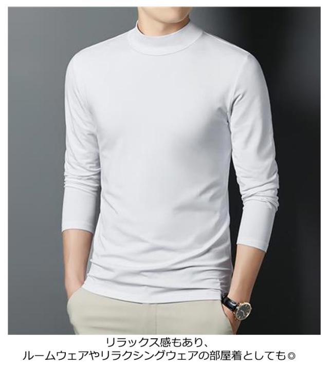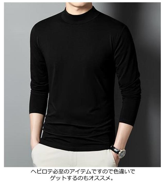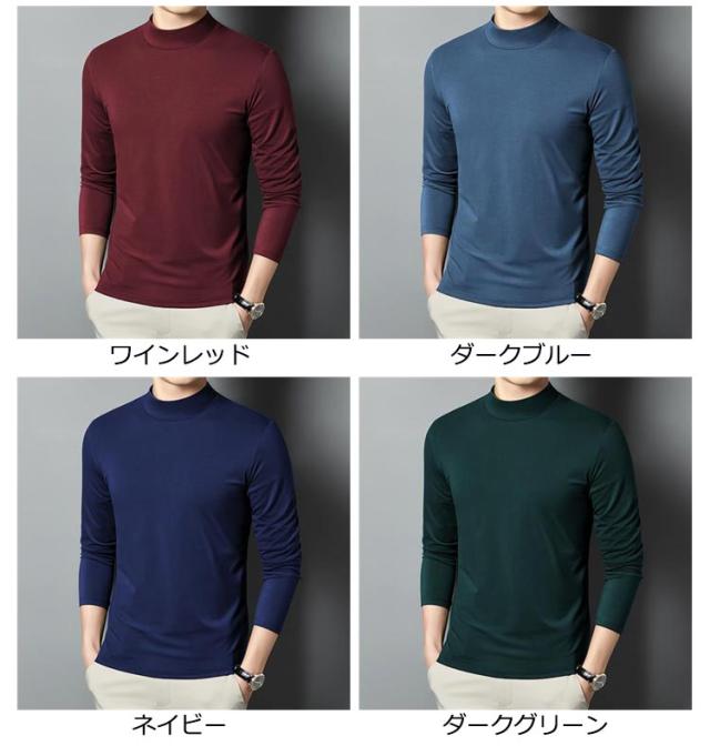 スムース素材 長袖 カットソー tシャツ ロンT 全8色 セミハイネック メンズ インナー トップス 通勤 レイヤード ストレッチ 伸縮性 ビジネス 普段着 メンズ 大きいサイズ 無地 重ね着 男性 春 秋 無地 黒 白