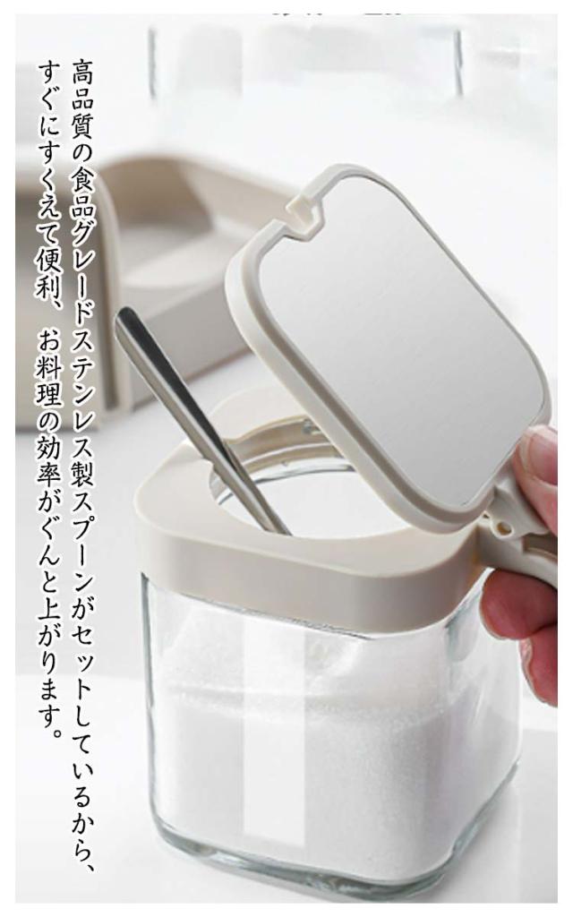 | フタが片手ワンタッチでで開くから使いやすい。 高品質の食品グレードステンレス製スプーンがセットしているから、すぐにすくえて便利、お料理の効率がぐんと上がります。 インテリアの邪魔にならないおしゃれなデザイン、高級感があり、新築祝いなどのギフトとしてもお勧め。 広口で調味料の入れ替えがラクラク♪300mlの大容量から、たっぷり入るので頻繁に詰め替える必要もありません。 スプーンとフタはステンレス製なので、いつも清潔に使えるのが嬉しいポイント。 | |