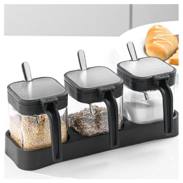 3個セット 新生活 調味料入れ 調味料ポット スパイスボトル 300ml 湿気防止 調味料ボトル ガラス スプーン付き 高級感 調味料ポット キッチン 砂糖 飲食店 家庭 おしゃれ 保存容器 スパイスボトル ギフト