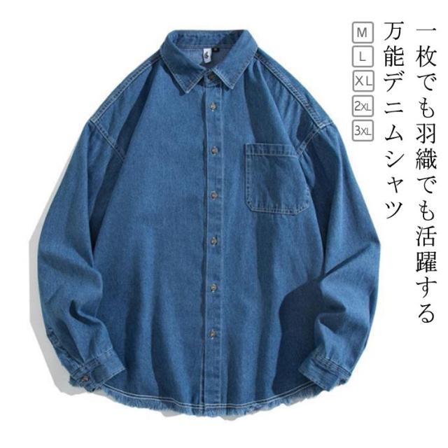 シャツ デニムシャツ デニムジャケット アウター 裾フリンジ メンズ オーバーサイズ レディース 長袖 ジーンズ 春アウター トップス ライトアウター デニムシャツ 体型カバー おすすめ おしゃれ 春