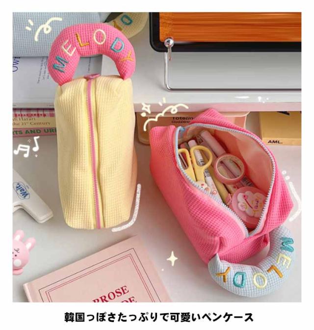 | 【ペンケース】【大容量】【6colors】 韓国っぽさたっぷりで可愛いペンケース ジッパー式で開閉しやすく大容量。 ペンなどの文房具やメイクブラシなど収納できます。 持ち手付きなので、軽量で持ち運びに便利 かわいいデザインなので、学生のお子様へのプレゼントにも最適です。 | |