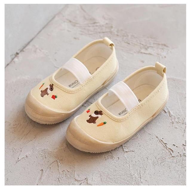 | アッパーに刺繍をあしらった、かわいらしい上履き。 キャンバス生地を使用しているため、お手入れは丸洗いでOKですよ。 子どもも脱ぎ履きがしやすい1本ゴムタイプです。 幼稚園、保育園、小学校の上履きとしてお使いいただいても、お外遊びをする時にお使いいただいても、様々な場面で活躍する、とってもかわいらしいシューズです。 | |