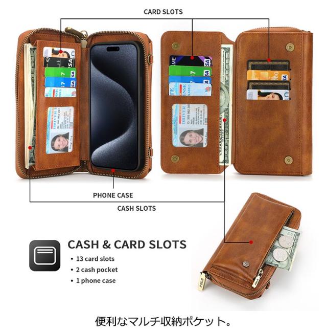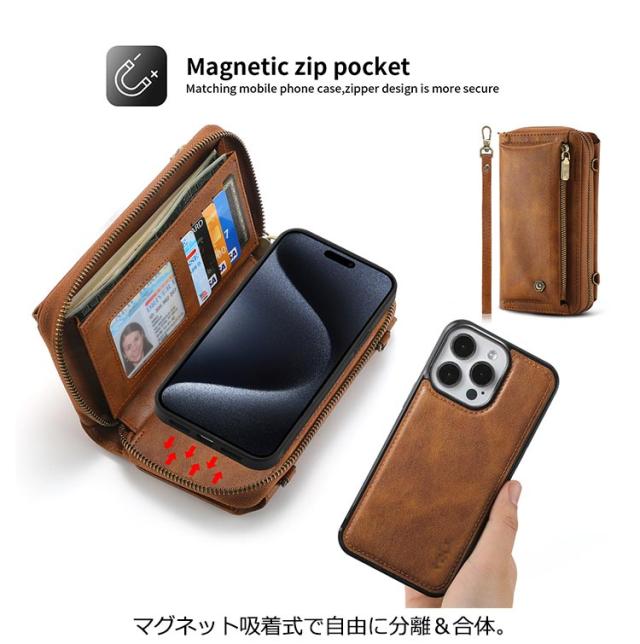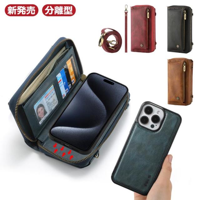 iphone15 iphone 15Pro ショルダー 小銭入れ iphone 手帳型 ウォレット ファスナーポーチ 15Plus ケース ケース カード収納 チャック付きバッグ iphone15 iphone ケース 15Pro ケース 大量収納 カード入れ iphone 15Pro 手帳型ケース 耐衝撃 全面保護