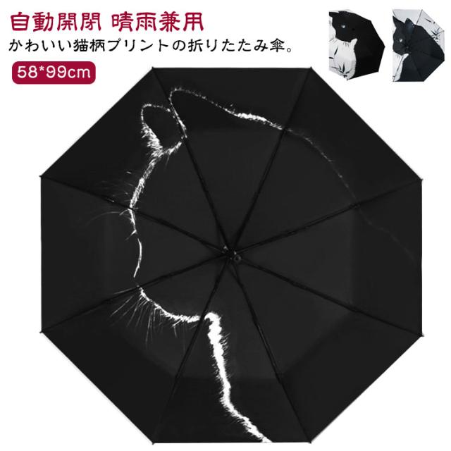 UPF50 猫柄 撥水 傘 折りたたみ傘 メンズ UVカット 自動開閉 送料無料 完全遮光 耐風 ねこ 軽量 紫外線遮断 頑丈 通学 8本骨 折りたたみ 折り畳み傘 送料無料 ひんやり 涼しい ワンタッチ 晴雨兼用 遮熱 ネコちゃん プリント かわいい 学生 レディース
