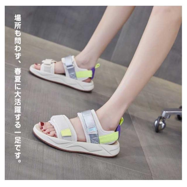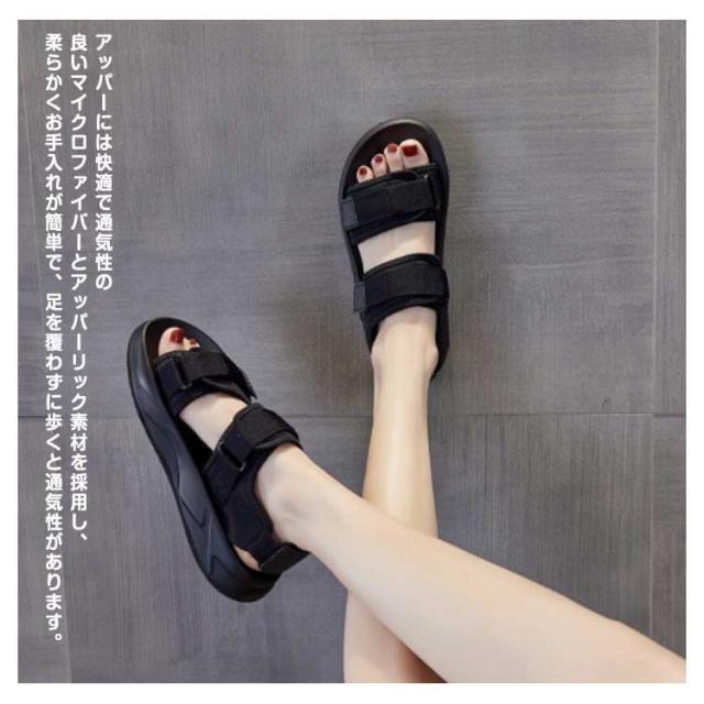 スポーツサンダル レディース スニーカーサンダル 厚底サンダル 美脚 厚底 滑り止め サンダル おしゃれ 歩きやすい コンフォート シューズ 軽量 マジックテープ