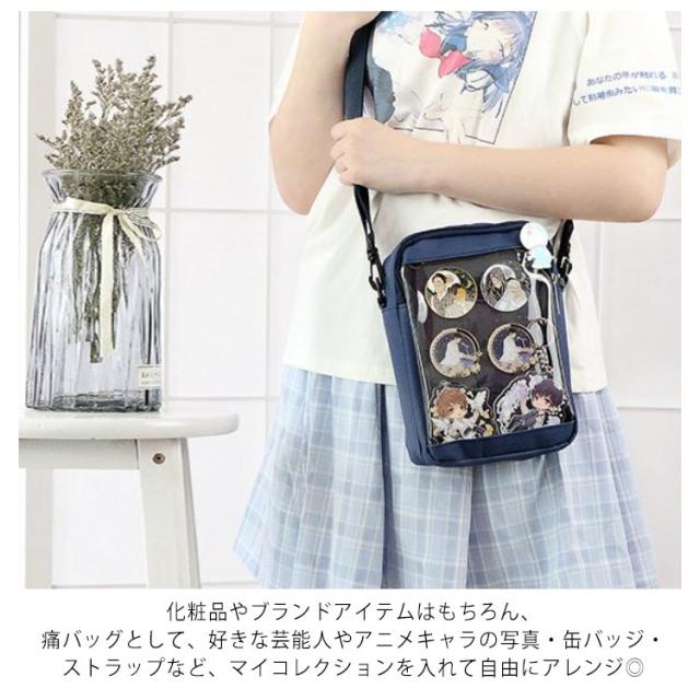 | 推しと一緒にお出かけできるクリアポケットショルダーバッグ。 見せたいアイテムをオシャレに持ち歩けます♪ 化粧品やブランドアイテムはもちろん、痛バッグとして、好きな芸能人やアニメキャラの写真・缶バッジ・ストラップなど、マイコレクションを入れて自由にアレンジ◎ ショルダータイプの痛バッグです! 推し の写真、缶バッジ、ストラップ などを入れて自分好みの痛バを作ってください♪ 小さめサイズで使い勝手の良い痛バッグをお探しの方にピッタリ◎ コンパクトかつシンプルなデザインの痛バッグなので普段使いでも重宝します! | |