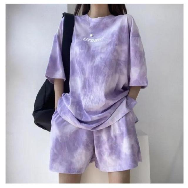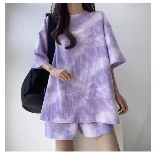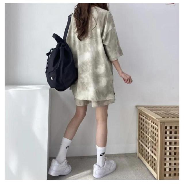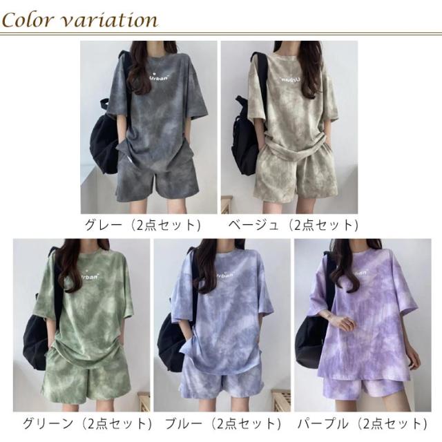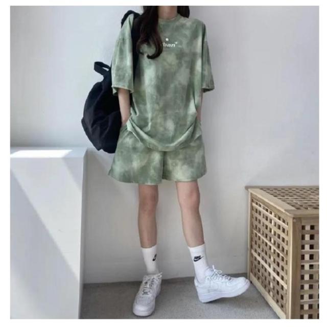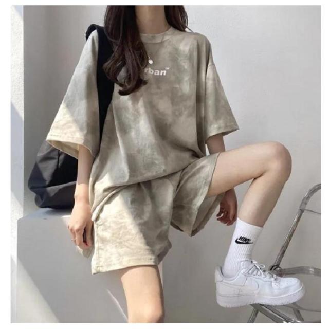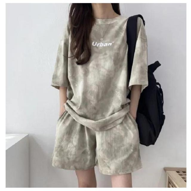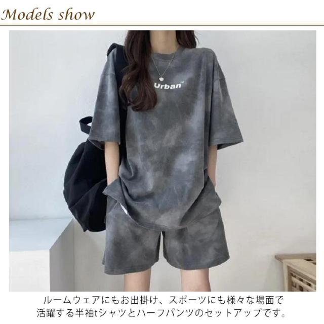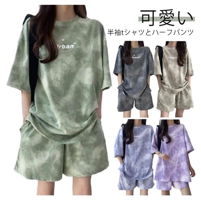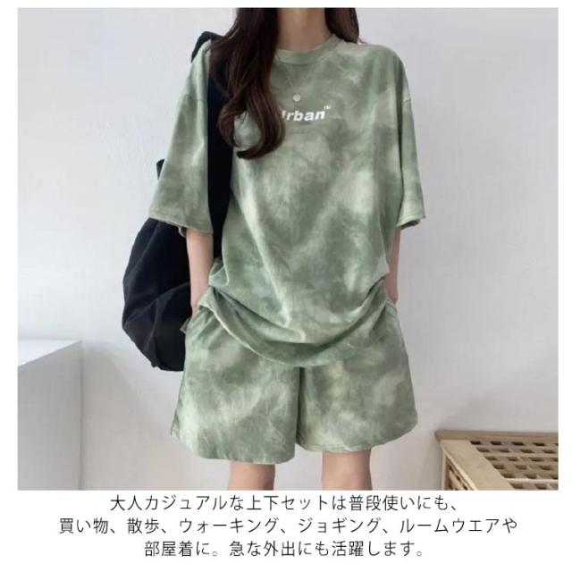 レディース Tシャツ 夏 大きいサイズ 運動着 スウェット 半袖 薄手 セットアップ プリント tシャツ ショートパンツ 2点セット ハーフパンツ ルームウェア 部屋着 染め ゆったり 上下セット スポーツウェア 半袖 韓国ファッション カジュアル