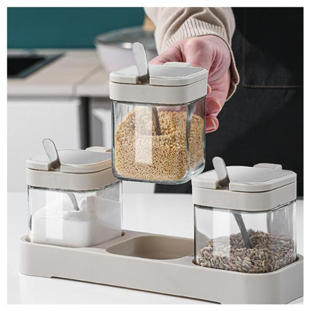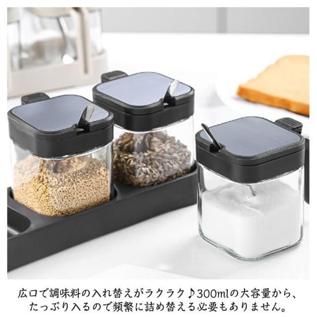 3個セット 新生活 調味料入れ 調味料ポット スパイスボトル 300ml 湿気防止 調味料ボトル ガラス スプーン付き 高級感 調味料ポット キッチン 砂糖 飲食店 家庭 おしゃれ 保存容器 スパイスボトル ギフト