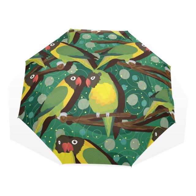 AOMOKI 折り畳み傘 折りたたみ傘 日傘 手開 UVカットき 三つ折り 晴雨兼用 梅雨対策 耐強風 8本骨 男女兼用 インコ カラフル 鳥柄