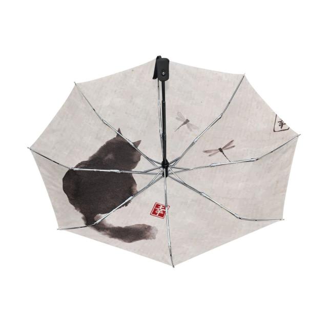 SAMAU 折りたたみ傘 自動開閉 猫柄 水墨画 軽量 レディース かわいい 日傘 ワンタッチ 晴雨兼用 おしゃれ UVカット 丈夫 耐風撥水 収納ポ