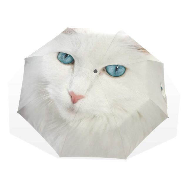 SUKAU 折り畳み傘 猫柄 白猫 レディース 晴雨兼用 軽量 折りたたみ 日傘 手動 傘 大きい 梅雨対策 丈夫 頑丈な8本骨 収納ケース付 携帯用
