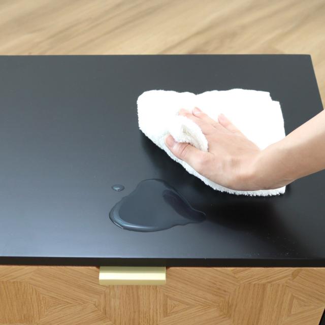 表面には水や傷に強いラッカー塗装が施されています。水などをこぼしてしまってもサッと拭き取るだけなのでお手入れがラクラクです。