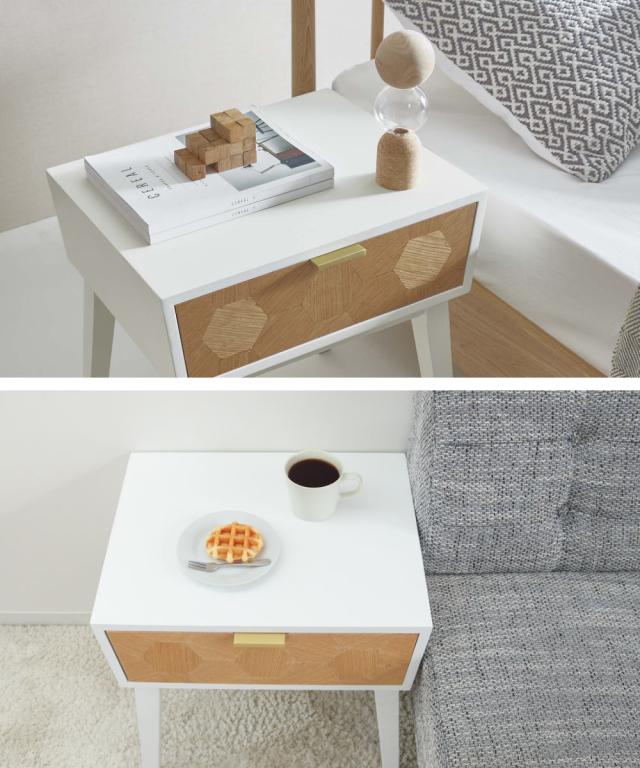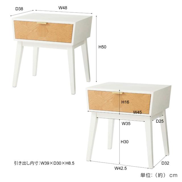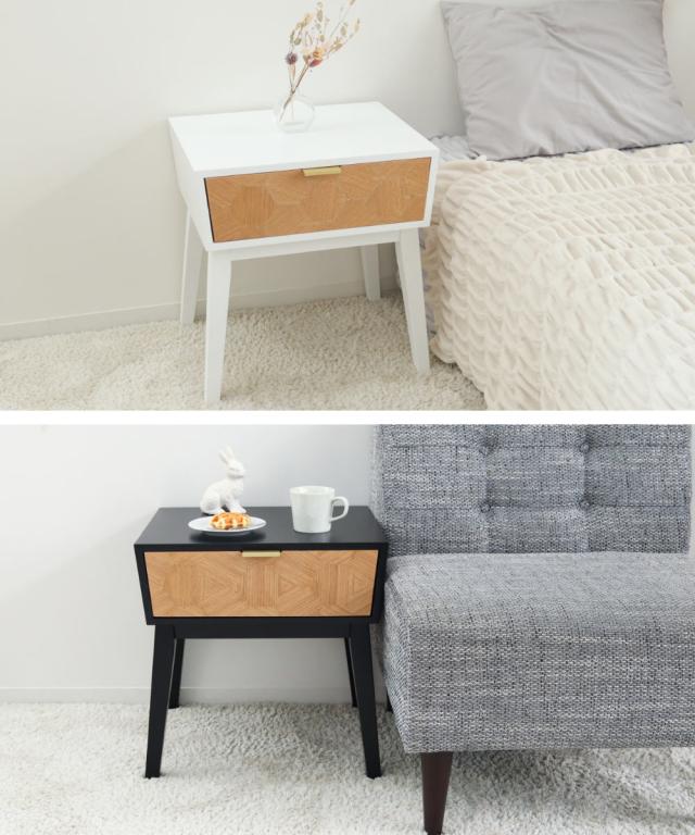 サイドテーブル 幅48cm 収納付 ナイトテーブル ( 収納 チェスト 引き出し 木目 木製 北欧 モダン ミニテーブル ソファ ベッド 横 )