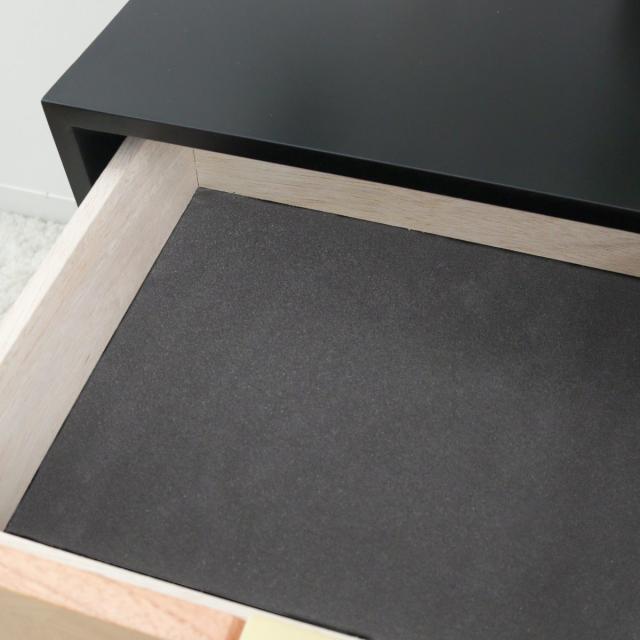 引き出しの底板にはベロア生地が貼られています。収納した物が滑りにくく、傷や摩耗などを防いでくれます。