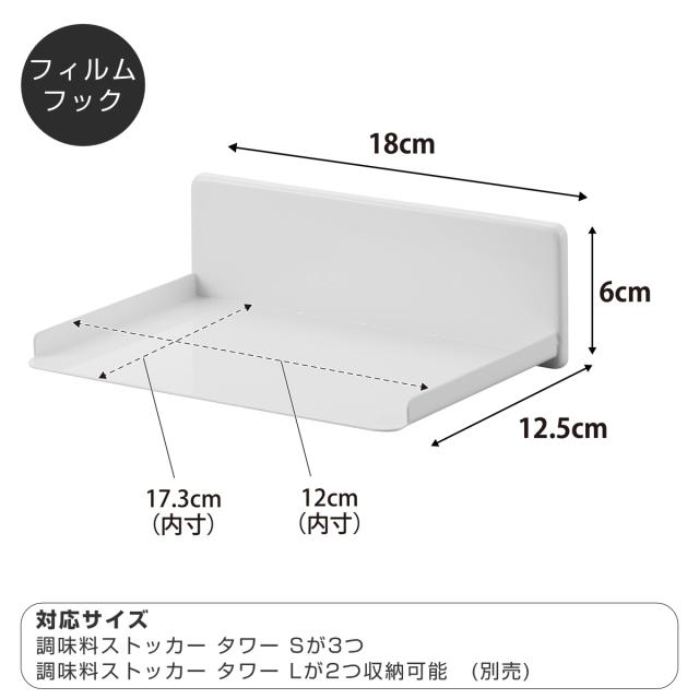 | サイズ | 内寸:約 幅17.3×奥行12(cm) 本体:幅18×奥行12.5×高さ6cm(フィルムフック含まず) フィルムフック接着面:幅6×高さ6cm(1つあたり) |
