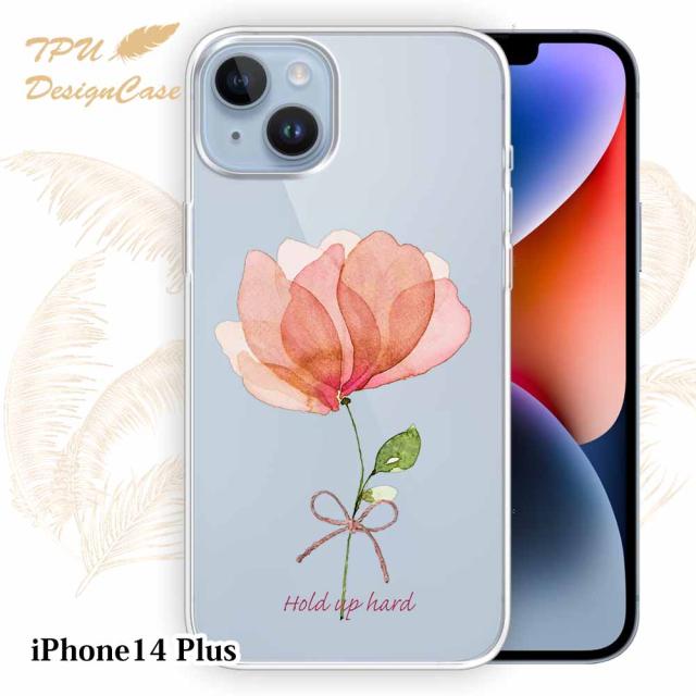 【14時までの注文で当日発送】 iPhone14 Plus ソフトケース TPU クリアケース 透明 アイフォン14プラス ケース おしゃれ カラフル かわいい 花 花柄 ピンクの花 困難に打ち勝つ