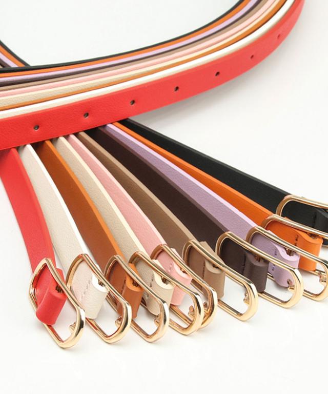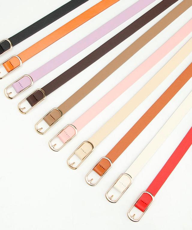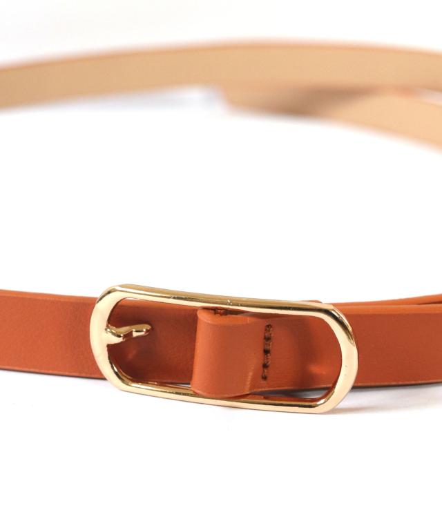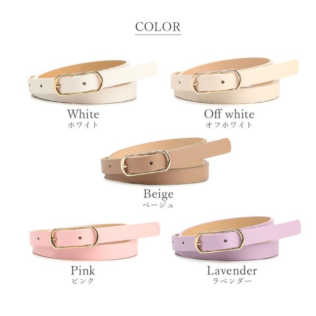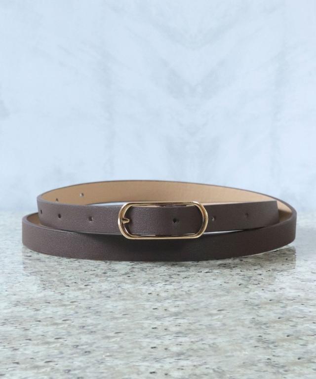 極細フレームバックルに細幅PUレザーを組み合わせた、レディライクなデザインベルト。