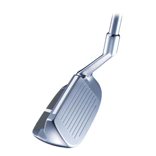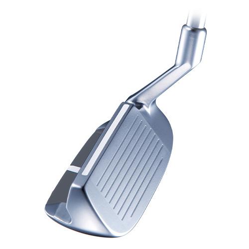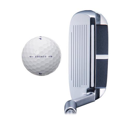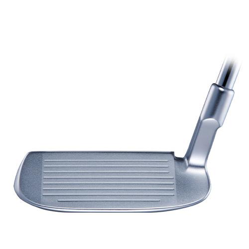 ライ角をパターと同じ70度に設定し、太めのグリップと白いサイトラインの効果でパターのように構え、パターのように打てば簡単にピンに寄る設計。