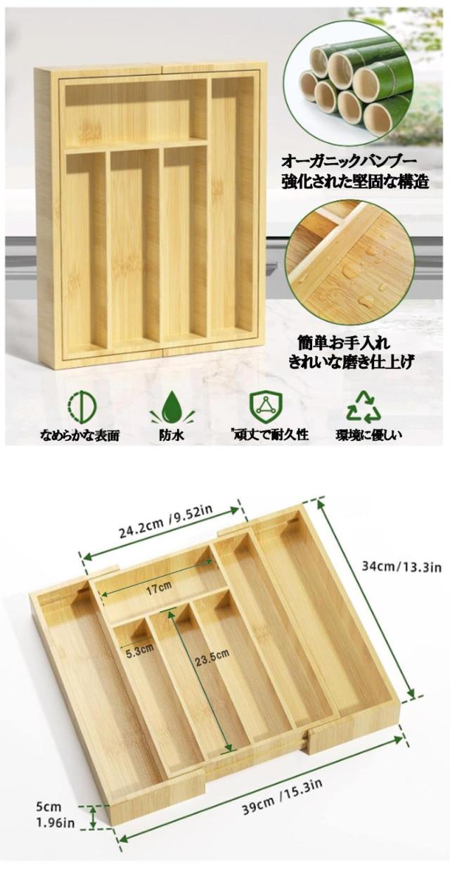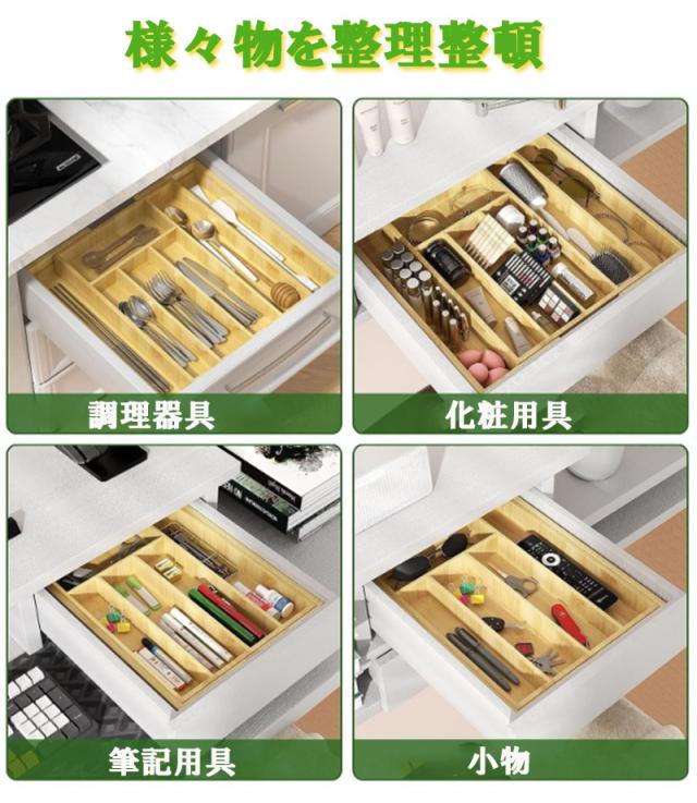 カトラリーケース カトラリー収納ボックス 木製 キッチン引き出し整理 キッチン収納 トレー スライド式 拡張 小物収納 食器収納 ボックス 竹製 zk1185