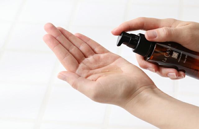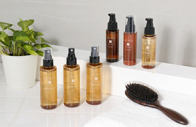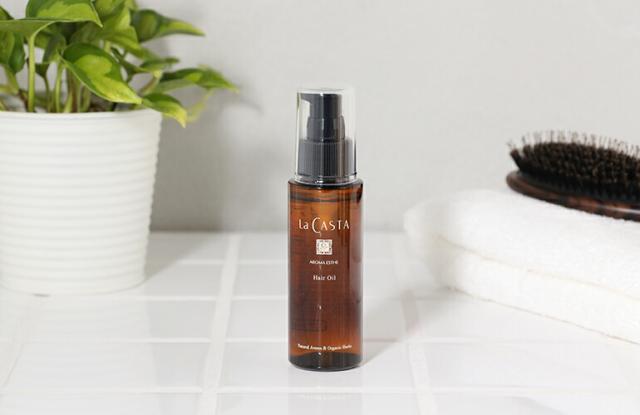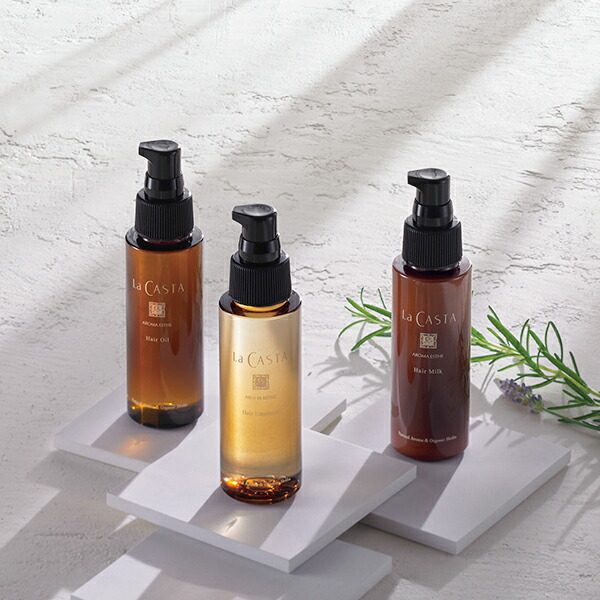 髪の毛1本1本をうるおいで満たす。 しっとりまとまる濃厚ヘアオイル。 La CASTA アロマエステ ヘアオイル 80ml 厳選された植物油を独自のバランスで配合したノンシリコンヘアオイルです。 濃厚なしっとりオイルが髪一本一本をうるおいで満たし、柔らかな質感とツヤのある美しい髪へと導きます。 タオルドライした濡れ髪にはもちろん、朝のスタイリング時など、乾いた髪にも使えます。 スタイリング時に使うと、ウェット感のある仕上がりに。 髪の化粧水「ヘアローション」で整えた後の仕上げに、ヘアオイルで髪表面を保護。 髪の化粧水との重ね付けをすることで、上質な髪へと導きます。 ヘアオイルは、毛量が多い方、硬い髪質の方にオススメです。 | |||||||||||||||||||||||||||||||||