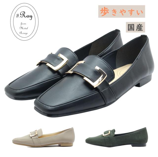 F.Ray from Metal Rouge メタルルージュ 2124 レディース ローファー パンプス シューズ スクエアトゥ ローヒール ベルト ビット バックル 軽量 日本製 靴