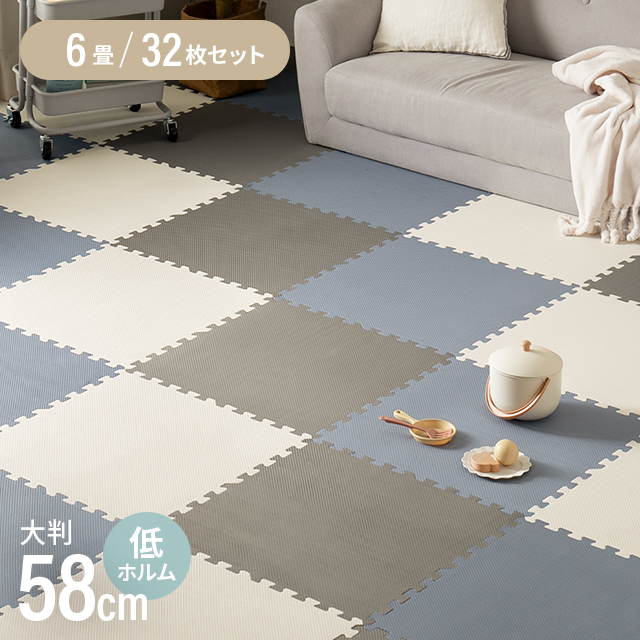 ジョイントマット 安心のノンホルムアルデヒド 大判 6畳 58cm 32枚セット 床暖房対応 安全のクッション性 防音対策 水洗いOK 防水 キッズ ジョイント マット カーペット ベビー フロアマット 赤ちゃん
