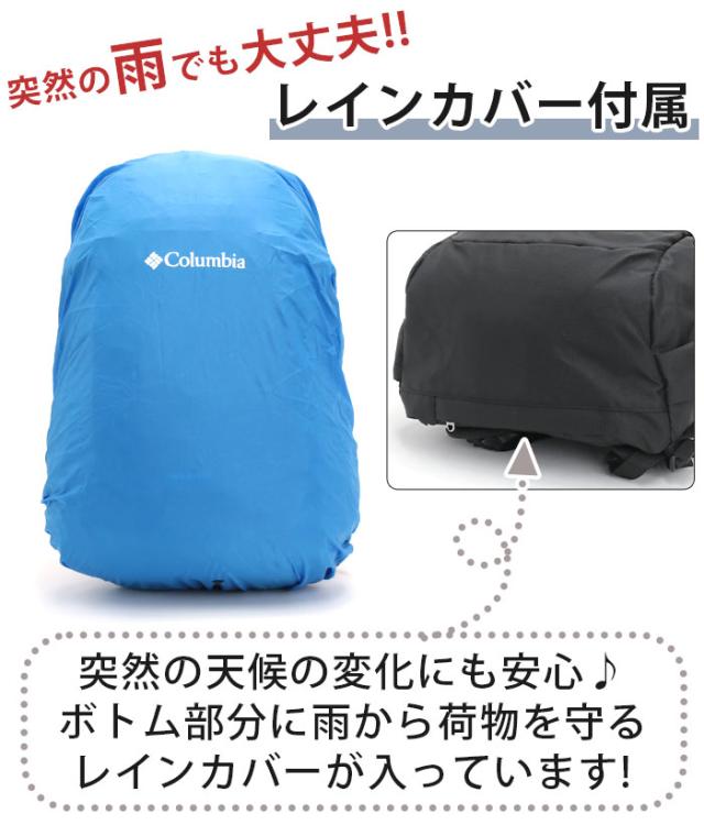| この商品について | 確かな品質で幅広い年齢層に支持されている「 Columbia (コロンビア)」から、さらなる進化を遂げた日帰り登山向けの定番のバックパックが登場! コロンビア独自のはっ水(撥水)機能「オムニシールド」で小雨や泥汚れをガードします。 開口部はダブルファスナーで開閉がしやすく荷物の出し入れがスムーズ◎ メインルームは容量約25LでA4サイズ対応!教科書や参考書、ビジネスシーンに必要な荷物もしっかり収納してくれるので普段使いはもちろん通勤通学にもおすすめです。 サイドにコンプレッションベルトが付いているので、リュックの幅を荷物の量に応じて調節する事が可能! 内外に大小さまざまなポケットが付いているので、小物の収納にも困りません。 また、フロントのファスナーポケットインナーにメッシュポケットとテープループも◎ 背面は中央に通気路を設けた通気性の良い構造になっており、ショルダーベルトもクッションパッド入り&通気性の良いメッシュ素材を採用。胸前で留めるチェストベルトと着脱可能なヒップベルトが付属されており、フィット感を高め体への負担を軽減します。 急な悪天候に役立つ風飛び防止ベルト付きレインカバーがボトム部分に収納されており、突然の雨にもすぐ対応! アクティブな毎日をサポートしてくれる使いやすいバッグは、デイリーユースからスポーツシーンやレジャーなどのアウトドアシーンまで幅広く活躍すること間違いなしです。 |