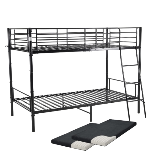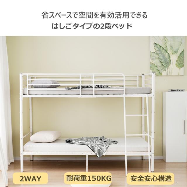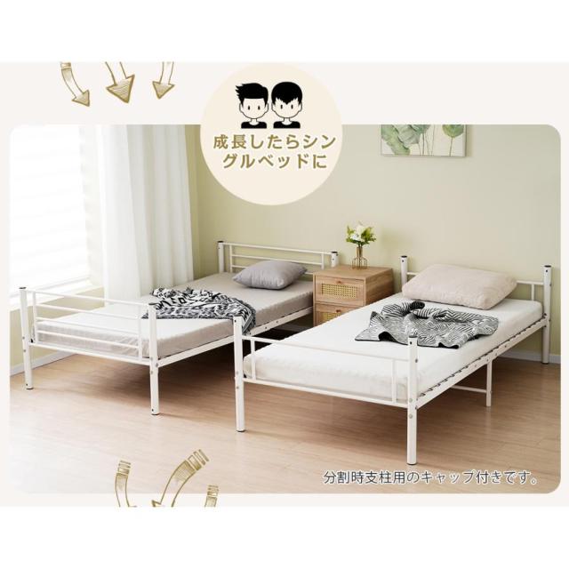 【10cm厚さマット2個付き】2段ベッド 二段ベッド ロフトベッド 上下分割可能 耐震ベッド シングルベッド パイプベッド 大人ベッド パイプ 頑丈スチール はしご付き 業務用二段ベッド 子供部屋 社員寮 学生寮 大人用可