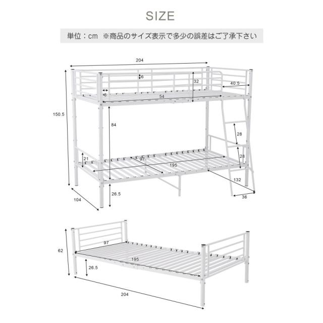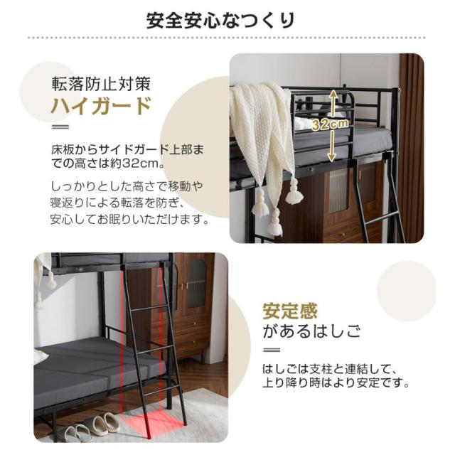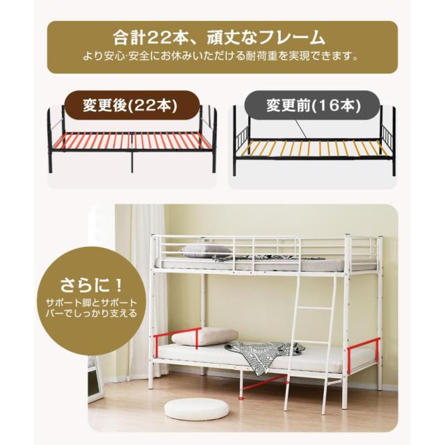 【上/下荷重約150kg】丈夫でしっかりとした構造なので、子ども部屋や社員寮にはぜひおすすめです。