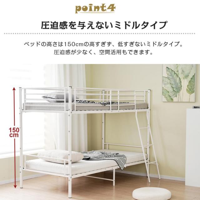 【圧迫感を与えないミドルタイプ】ベッドの高さは150cmの高すぎず、低すぎないミドルタイプ。圧迫感が少なく、空間活用もできます。