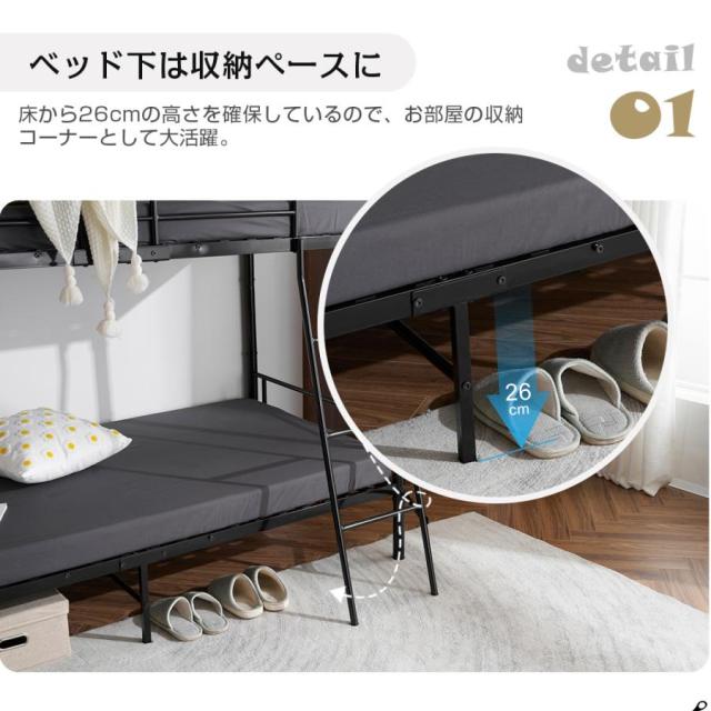 【はしごタイプのベッド】飽きなくシンプルなデザインはお部屋に馴染みやすく、上下分割もできるので子供から大人まで快適に使うことができます。