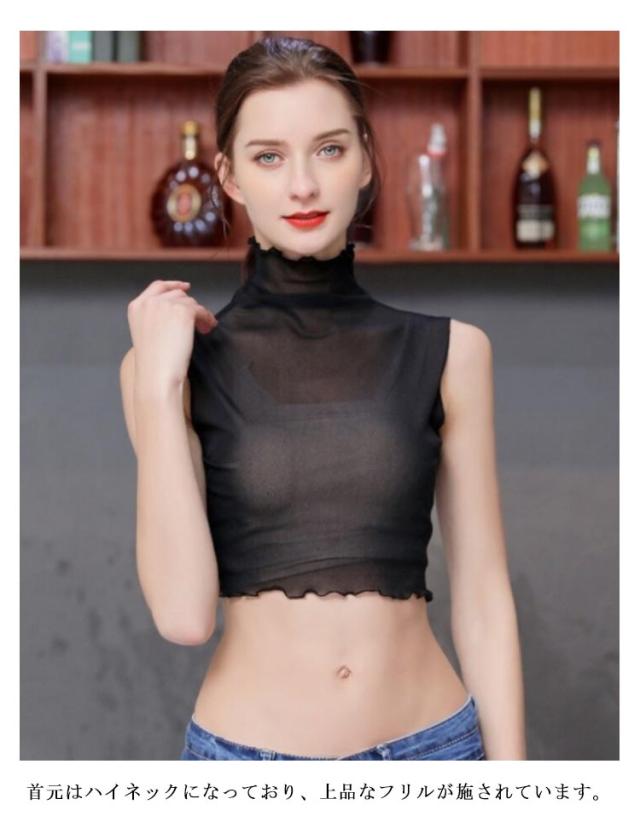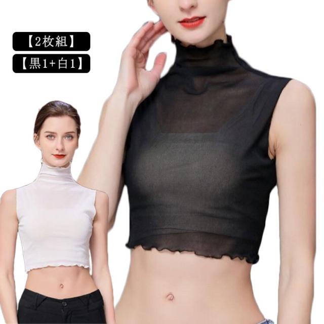【2枚組】シースルー カットソー レース ハイネック 付け襟 タートルネック フリルネック レイヤード風 タートル レイヤード 重ね着 インナー レディース レースハイネック ノースリーブカットソー つけ襟 つけえり 女性 グッズ