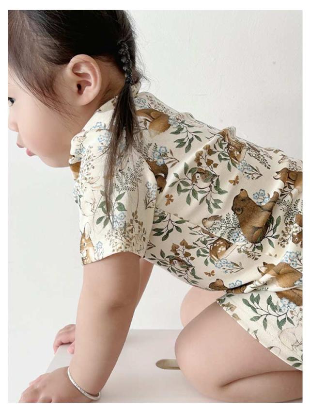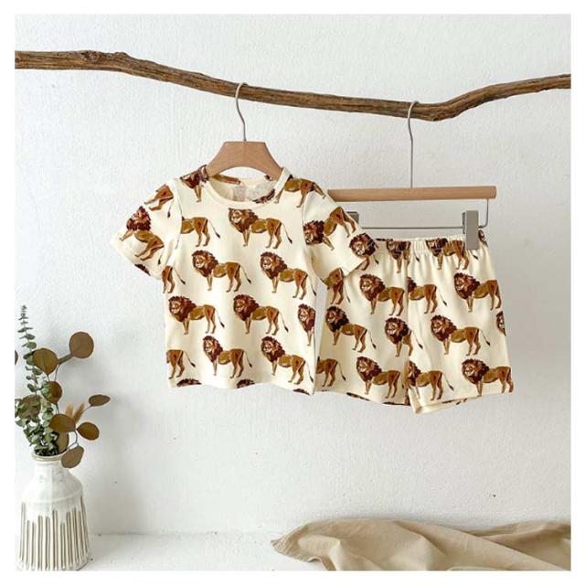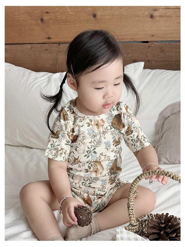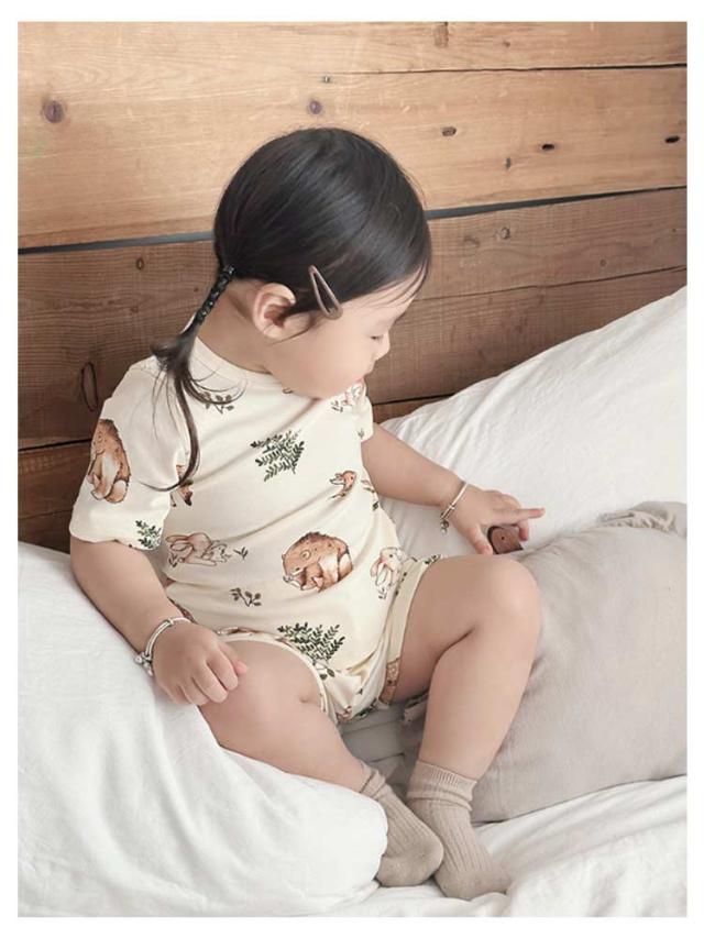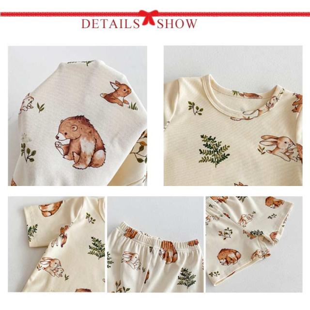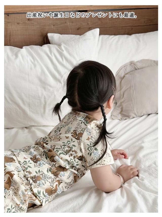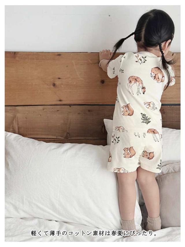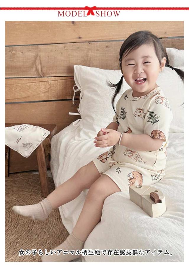 | かわいいベビー用ルームウエア。 半袖tシャツと短パンのセットアップです。 女の子らしいアニマル柄生地で存在感抜群なアイテム。 軽くて薄手のコットン素材は春夏にぴったり。 サイズ展開豊富なので兄弟姉妹でお揃いもできます! 出産祝いや誕生日などのプレゼントにも最適。 | |