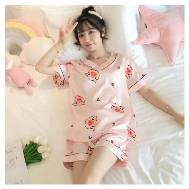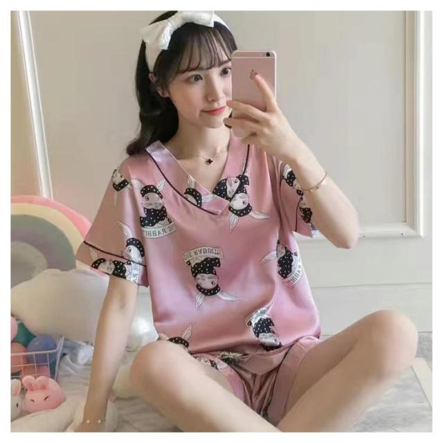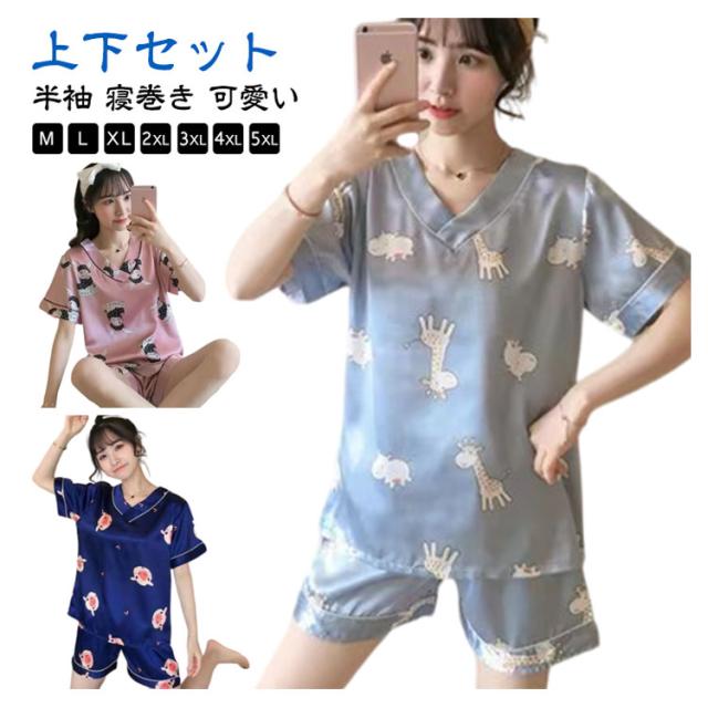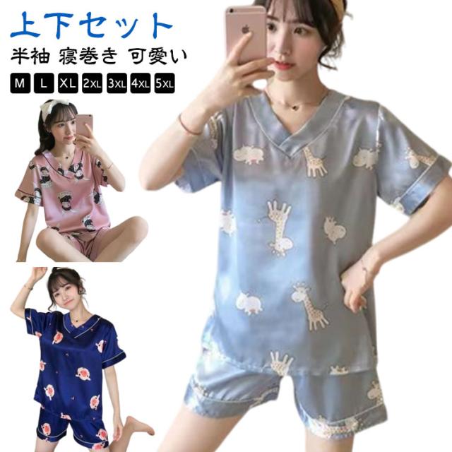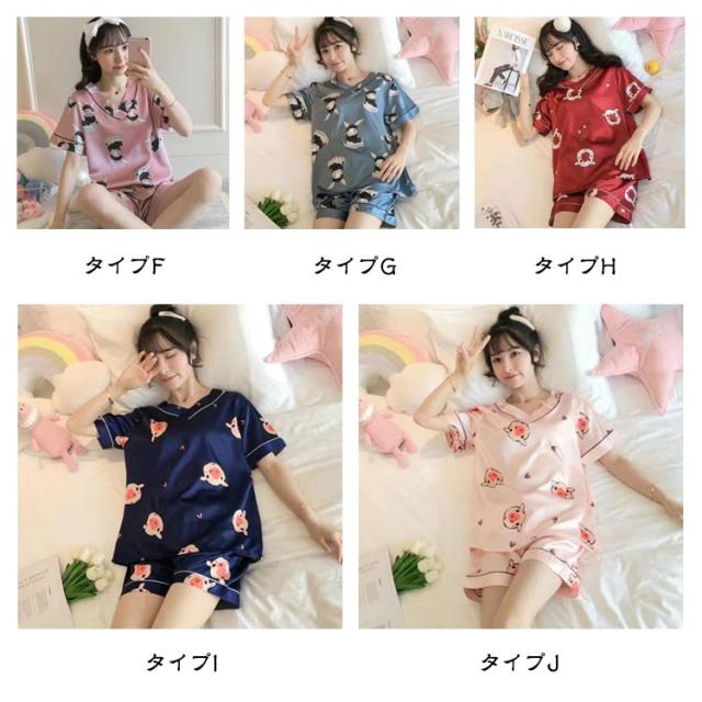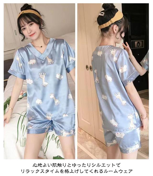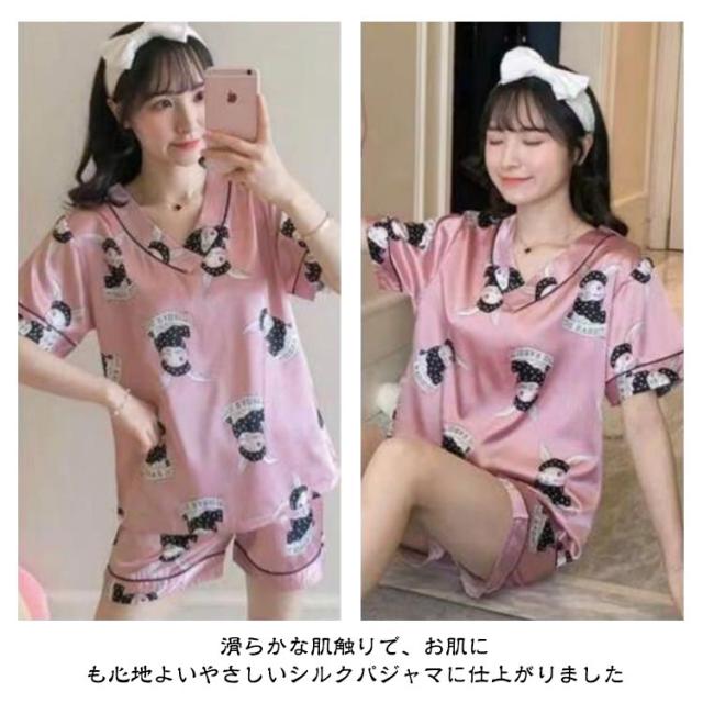 パジャマ シルクタッチ サテン 光沢 上下セット レディース 上下 セットアップ ルームウェア ナイトウェア 半袖 寝間着 ショートパンツ リラックス おしゃれ 部屋着 女性 女の子 ママ 大人 体型カバー ゆったり 寝巻き 可愛い 夏 かわいい セクシー 送料無料