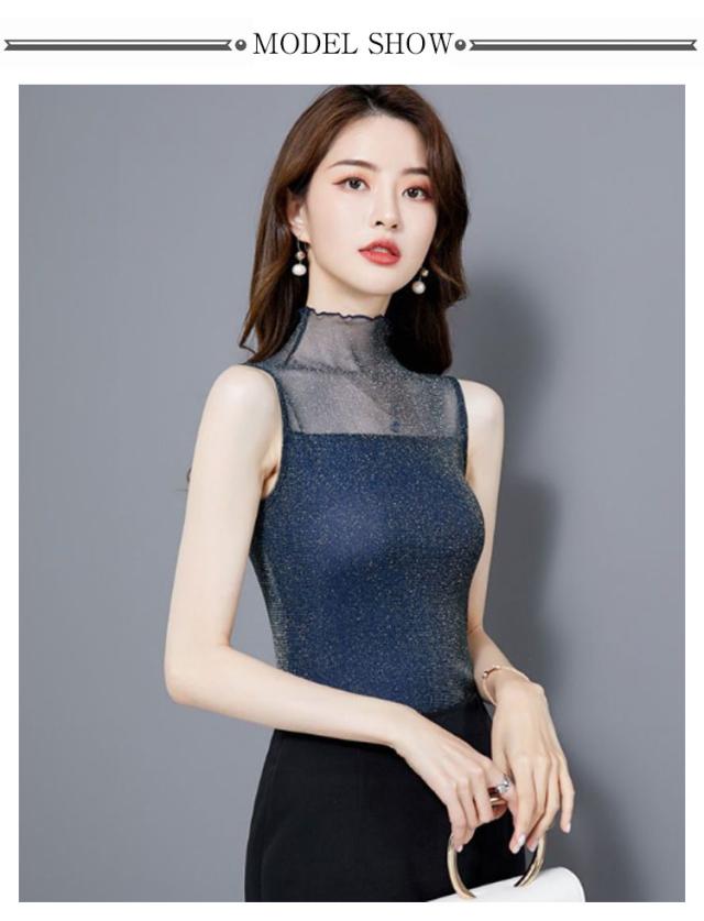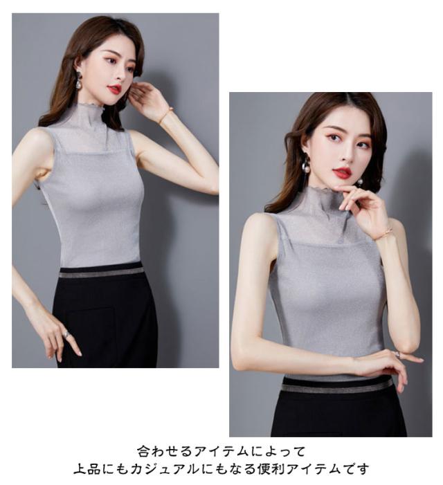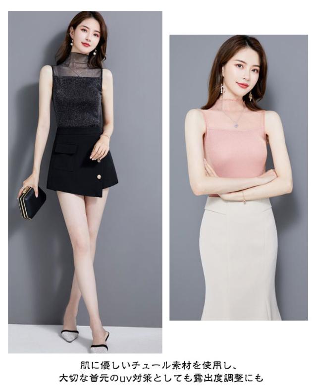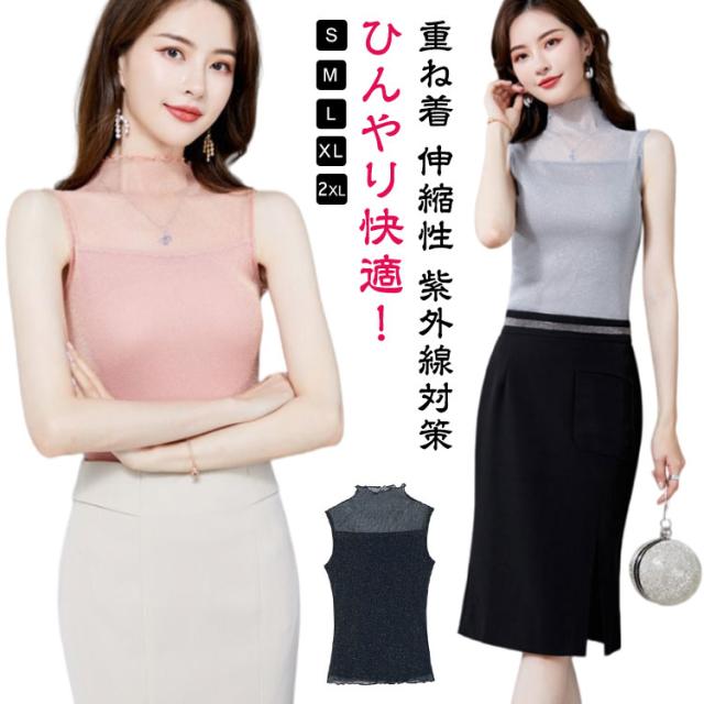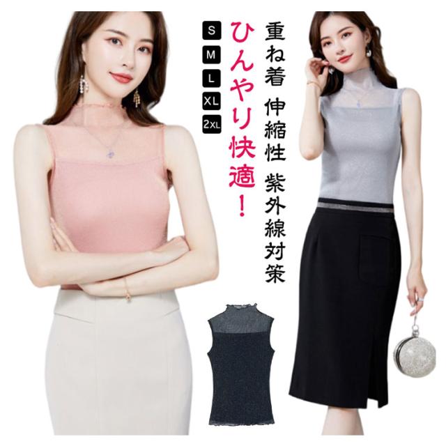 | S-2XL!ひんやり快適!汗でべたつかず着心地爽快の、涼感ハイネックノースリーブ ひやりとした肌さわりの接触冷感素材で汗ばむ季節にも過ごしやすくお使いいただけます。 肌に優しいチュール素材を使用し、大切な首元のuv対策としても露出度調整にも しっかりしてて伸縮性もあり、締め付けもなく、着心地が良いです 合わせるアイテムによって上品にもカジュアルにもなる便利アイテムです | |