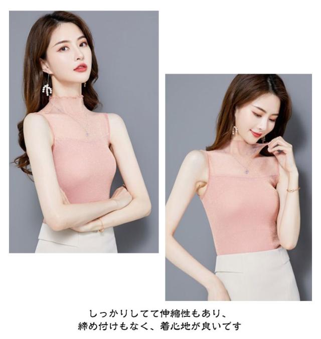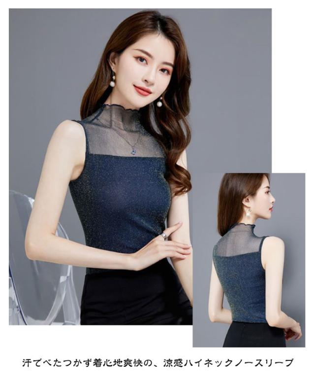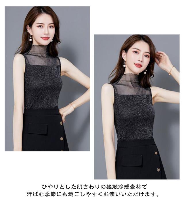 レディース 大きいサイズ レース トップス インナー 涼しい ノースリーブ ひんやり ハイネック タンクトップ カットソー 薄手 uv 日焼け防止 ゴルフ スポーツ 通勤 紫外線対策 透け感 肌見せ きれいめ セクシー 重ね着 伸縮性 上品 OL レイヤード 春夏 送料無料